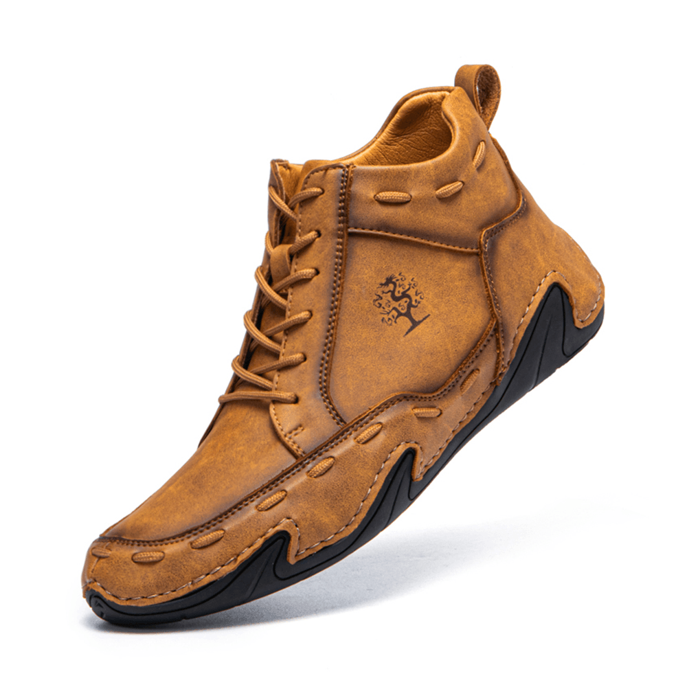 1*Kanyap-Men Retro Hand Stitching Leather Non Soft Lace up Ankle Boots